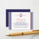 Preppy modern wedding directions insert card design with a nautical anchor graphic and elegant calligraphy scroll flourishes on a trendy diagonal stripe pattern background. Click the CUSTOMIZE IT button to customise fonts, move text around and create your own unique one-of-a-kind invitation design.