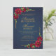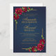 Navy and deep red peonies modern boho wedding invitation