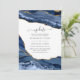 Navy blue and faux gold glitter agate stone postponed wedding announcement with elegant handwriting typography customisable to your specifics.