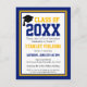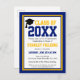 This Navy and Gold Graduation Party Invitation Postcard is a great way to celebrate the high school or college graduate. Personalise this with the name, school, year, and party details. This invite features bold typography in navy and gold school colours with a navy and gold border.