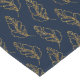 Gold leaf pattern on rich navy back ground table runner. Matching solid navy table cloth and fabric napkins.
