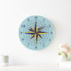 Navy and Gold Nautical Chart Compass Rose Boat Large Clock