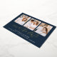 Announce your upcoming nuptials in style with our Elegant Script photo save the date card. The elegant save the date cards display 3 of your favourite engagement photos framed in navy with "save the date" in a gold foil modern calligraphy script. Personalise the card by adding your names, wedding date, and wedding location. The minimalist save the date card reverses to a solid navy background or a colour of your choice.