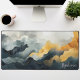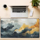 Elevate your workspace with this stunning watercolor abstract desk mat. The design features a dramatic, flowing landscape of deep navy, slate grey, and golden mustard tones, accented by delicate gold glitter veins that add a touch of luxury. A personalised name is elegantly displayed in a white script font in the lower corner, creating a professional and artistic focal point for your office or home study. This high-quality, durable mat provides a smooth surface for your mouse and keyboard while protecting your desk. With its sophisticated colour palette and modern aesthetic, this desk accessory brings a refined, artistic flair to your daily routine, making it a perfect gift for yourself or a stylish coworker.