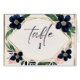 This is a decorative image with a gold geometric border adorned with dark blue flowers, soft pink roses, and green foliage. It has a sophisticated and elegant look, making it suitable for use in wedding table numbers, invitations, or event signage.