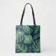 Navy and Green Monogrammed Monstera Leaves Tote Bag