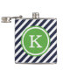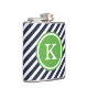 Navy and Green Nautical Stripes Monogram Hip Flask