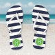 Custom printed flip flop sandals with a preppy nautical stripe pattern and your custom monogram or other text in a circle frame. Click Customise It to change text fonts and colours or add your own images to create a unique one of a kind design!
