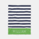 Navy and Green Stripes Monogram | Editable Colours Fleece Blanket