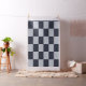 Stylish geometric fabric features a bold chequered pattern of navy and grey rectangles in this clean digital design. It has a bold but classic look to it.