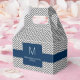 Navy and Grey Chevron Pattern Monogram Wedding Favour Box