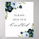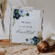 painted watercolor navy and light blue flowers and black script. The text and colours on this wedding sign poster can be edited.