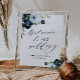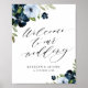 painted watercolor dusty blue and navy blue flowers and black script. The text and colors on this wedding sign poster can be edited.