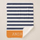 Navy and Orange Stripes Monogram | Editable Colour Sherpa Blanket