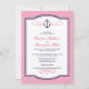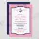Preppy modern wedding invitation design with a nautical anchor graphic and elegant calligraphy scroll flourishes on a trendy diagonal stripe pattern background. Click the CUSTOMIZE IT button to customise fonts, move text around and create your own unique one-of-a-kind invitation design.