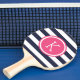 Navy and Pink Preppy Stripes Monogram Ping Pong Paddle