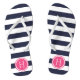 Custom printed flip flop sandals with a preppy nautical stripe pattern and your custom monogram or other text in a circle frame. Click Customise It to change text fonts and colours or add your own images to create a unique one of a kind design!