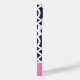 Stylish custom phone case in navy blue, pink and white colours. This design features a preppy Moroccan trellis pattern. Personalise it with your name or other custom text in a modern script monogram font. Use the design tools to choose any background colours, edit the text fonts and colours and upload your own photos to create a unique one of a kind device cover!