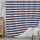Our summery shower curtain adds a dose of preppy, classic nautical style to your bathroom, with wide navy blue horizontal stripes flanked by thinner bands of dark red on a crisp white background.