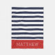 Navy and Red Stripes Monogram | Editable Colours Fleece Blanket
