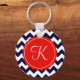 Navy blue and white zig zag stripes with a pop of blod red for a classic, nautical look. Personalise with any initial.
