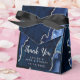 This elegant and glamourous birthday party thank you favour bag features a navy blue agate marble background with faux silver glitter accents. The text combines handwritten script and modern sans serif fonts for a classy and sophisticated look. This will be perfect for an autumn fall and winter birthday party.