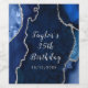 This elegant and glamourous birthday wine label features a navy blue agate marble background with faux silver glitter accents. The text combines handwritten script and modern sans serif fonts for a classy and sophisticated look. This will be perfect for autumn fall and winter birthday parties.