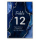 This elegant and glamourous table number wedding sign features a navy blue agate marble background with faux silver glitter accents. The text combines handwritten script and modern sans serif fonts for a classy and sophisticated look. This will be perfect for autumn fall and winter weddings.