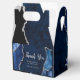 This elegant and glamourous wedding thank you favour bag features a navy blue agate marble background with faux silver glitter accents. The text combines handwritten script and modern sans serif fonts for a classy and sophisticated look. This will be perfect for autumn fall and winter weddings.