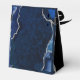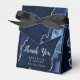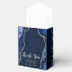 This elegant and glamourous wedding thank you favour bag features a navy blue agate marble background with faux silver glitter accents. The text combines handwritten script and modern sans serif fonts for a classy and sophisticated look. This will be perfect for autumn fall and winter weddings.