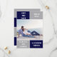 Navy blue and silver grey colour block wedding Save the Date card. The back includes a pattern with wide bands in blue and silver grey.