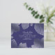 Navy and silver leaves save the date postcard.