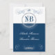 Navy and silver wedding invitations with rhinestones decor and calligraphic design elements. Elegant blue and silver colours with lots of details. 2 sided design, personalise every field with your wedding details. There are matching RSVP, Thank You, Save The Date, etc. These blue and silver invitations are part of my Blue and Silver wedding set.