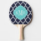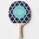 Navy and Turquoise Moroccan Quatrefoil Monogram Ping Pong Paddle