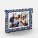 Display a favorite family photo in elegant style with our preppy chic freestanding acrylic block. Design features your horizontal or vertical photo framed by a bamboo lattice pattern in classic navy blue and white.
