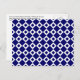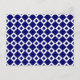 A bold, graphic pattern of interlocking navy and white diamond shapes. The white diamonds each contain a small dark blue diamond making navy the dominant colour of the geometric design.