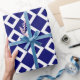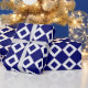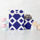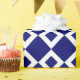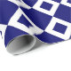 A bold, graphic pattern of interlocking navy and white diamond shapes. The white diamonds each contain a small dark blue diamond making navy the dominant colour of the geometric design.