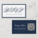 Classic elegant navy blue and white calligraphy script with minimalist simplistic plain style personalised wedding QR code response card. This product can be easily personalised. If you need help with the customisation of the product or need matching products kindly please contact me via Zazzle.
