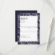 Add this Navy and White Elegant RSVP Card to your Wedding Invitation Package. This card is designed with stylish white scroll decorative trim on a navy background. The text includes: Your Reply By Date with space for guests to complete their information. The reverse is a matching Navy background. To personalise, simply insert your Reply By Date into our easy template, replacing the sample text. Be sure to view the entire Navy and White Elegant Wedding Collection for matching cards and accessories.