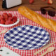 Navy and White Gingham Pattern Paper Plate