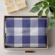 Dark blue, white, and light blue squares form a bold, buffalo plaid. The navy and white gingham pattern reminds me of classic decor.