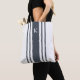 Personalise this striped tote with your single initial monogram for a bag that's uniquely yours! Grainsack stripe design features wide and narrow vertical stripes in smoky navy blue grey on a white background.