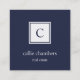 Navy and White Monogram Square Business Card
