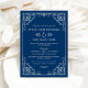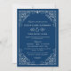 Navy and White Ornate Scroll Wedding Invitation