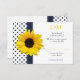 The text on this classy navy and white polka dot sunflower wedding RSVP reply insert card is fully customisable. To change it use the personalise option. For more extensive text changes, such as changes to the font, font colour, or text layout, use the customise option.