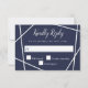 A clean contemporary design in navy blue and white with minimalist appeal, this wedding RSVP card conveys a modern minimalist style. White geometric lines surround your text over a navy blue background. Personalise the response date with your required date.