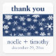 This navy and white snowflakes wedding favour thank you sticker and/or envelope seal matches the wedding invitation shown below, and would be a lovely way to seal your outgoing wedding invitations, or size it up to the 3" diameter size and use it on your wedding favours.