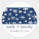 This navy and white snowflakes wedding favour sticker and/or envelope seal matches the wedding invitation shown below, and would be a lovely way to seal your outgoing wedding invitations, or size it up to the 3" diameter size and use it on your wedding favours.
