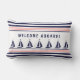 Navy and White Striped Nautical Welcome Aboard Lumbar Cushion
