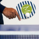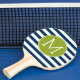 Navy and White Striped Pattern Green Monogram Ping Pong Paddle